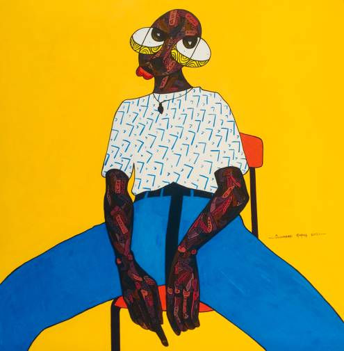 Born and working in Nigeria, the acrylic on canvas portraits of Gafar Oluwabori are nothing near insipid. In his inquisition of attempting to sought various approaches of altering human forms into abstract arrangements. Oluwabori creates both colourful and vibrant renditions of women’s faces, with equally pulsating backgrounds.